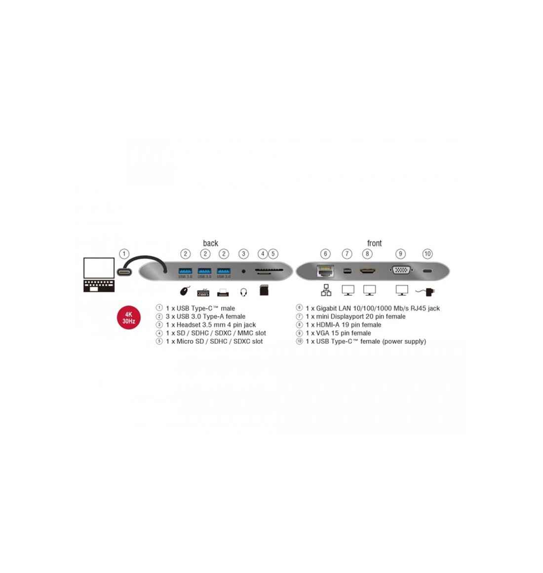 USB Type-C 3.1 Dockingstation 4K 30 Hz grau