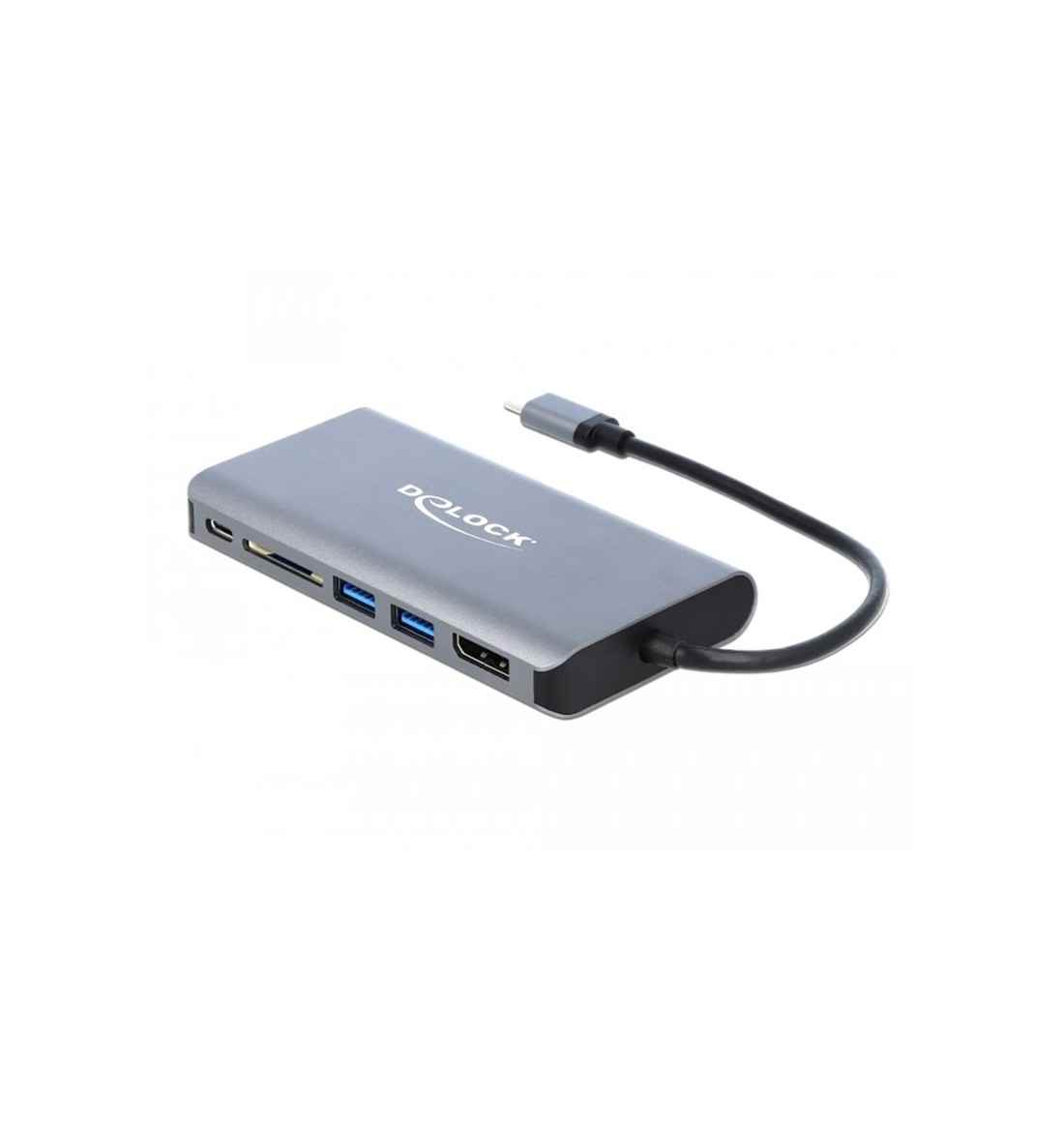Diese Dockingstation von Delock kann an einen Computer mit USB-C™ DP Alt Mode oder Thunderbolt™ 3 Port angeschlossen werden und stellt eine Vielzahl von Schnittstellen zur Verfügung. Am DisplayPort und HDMI Ausgang können gleichzeitig zwei Monitore betrieben werden. Drei integrierte USB Ports ermöglichen die Verwendung von Peripheriegeräten, und Anschlüsse für Gigabit Netzwerk, sowie ein SD Card Reader, vervollständigen die Ausstattung.