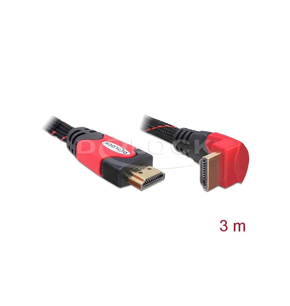 Dieses High Speed HDMI mit Ethernet Kabel von Delock entspricht dem neuesten HDMI Standard und vereint schnelle Datenübertragung sowie Audio-/ Video- und Ethernetverbindung in einem. Sie können somit z. B. Ihren PC oder ein DVD / Blu-ray Laufwerk an einen Monitor oder TV anschließen. Mit Hilfe des gewinkelten Steckers erreichen Sie auch schwer zugängliche HDMI Ports. Der HDMI-A Stecker ist zudem abwärtskompatibel zu seinen Vorgängern und ermöglicht weiterhin den Anschluss Ihrer bisherigen Geräte.