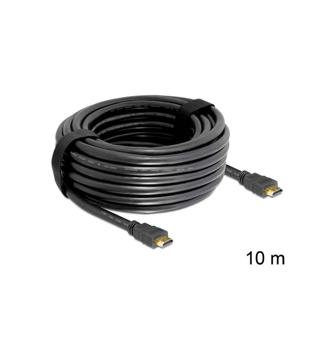 Dieses High Speed HDMI mit Ethernet Kabel von Delock entspricht dem neuesten HDMI Standard und vereint schnelle Datenübertragung sowie Audio-/ Video- und Ethernetverbindung in einem. Sie können somit z. B. Ihren PC oder ein DVD / Blu-ray Laufwerk an einen Monitor oder TV anschließen. Der HDMI-A Stecker ist abwärtskompatibel zu seinen Vorgängern und ermöglicht weiterhin den Anschluss Ihrer bisherigen Geräte. Der höhere Drahtdurchmesser und die verdrillten Datenleitungen gewährleisten eine zuverlässige Datenübertragung selbst für diese Kabellänge.