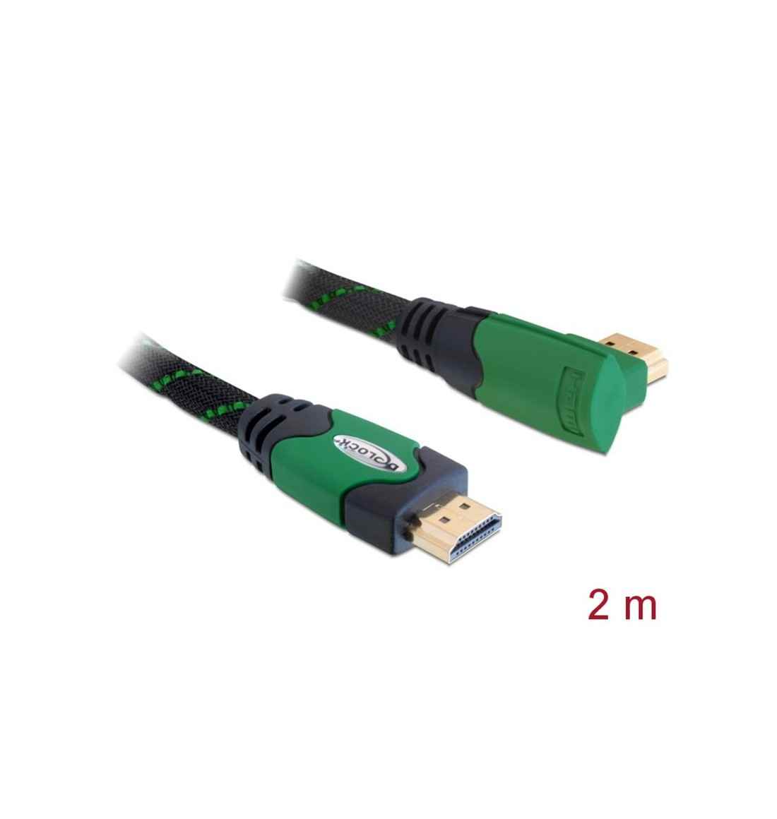 Dieses High Speed HDMI mit Ethernet Kabel von Delock entspricht dem neuesten HDMI Standard und vereint schnelle Datenübertragung sowie Audio-/ Video- und Ethernetverbindung in einem. Sie können somit z. B. Ihren PC oder ein DVD / Blu-ray Laufwerk an einen Monitor oder TV anschließen. Mit Hilfe des gewinkelten Steckers erreichen Sie auch schwer zugängliche HDMI Ports. Der HDMI-A Stecker ist zudem abwärtskompatibel zu seinen Vorgängern und ermöglicht weiterhin den Anschluss Ihrer bisherigen Geräte.