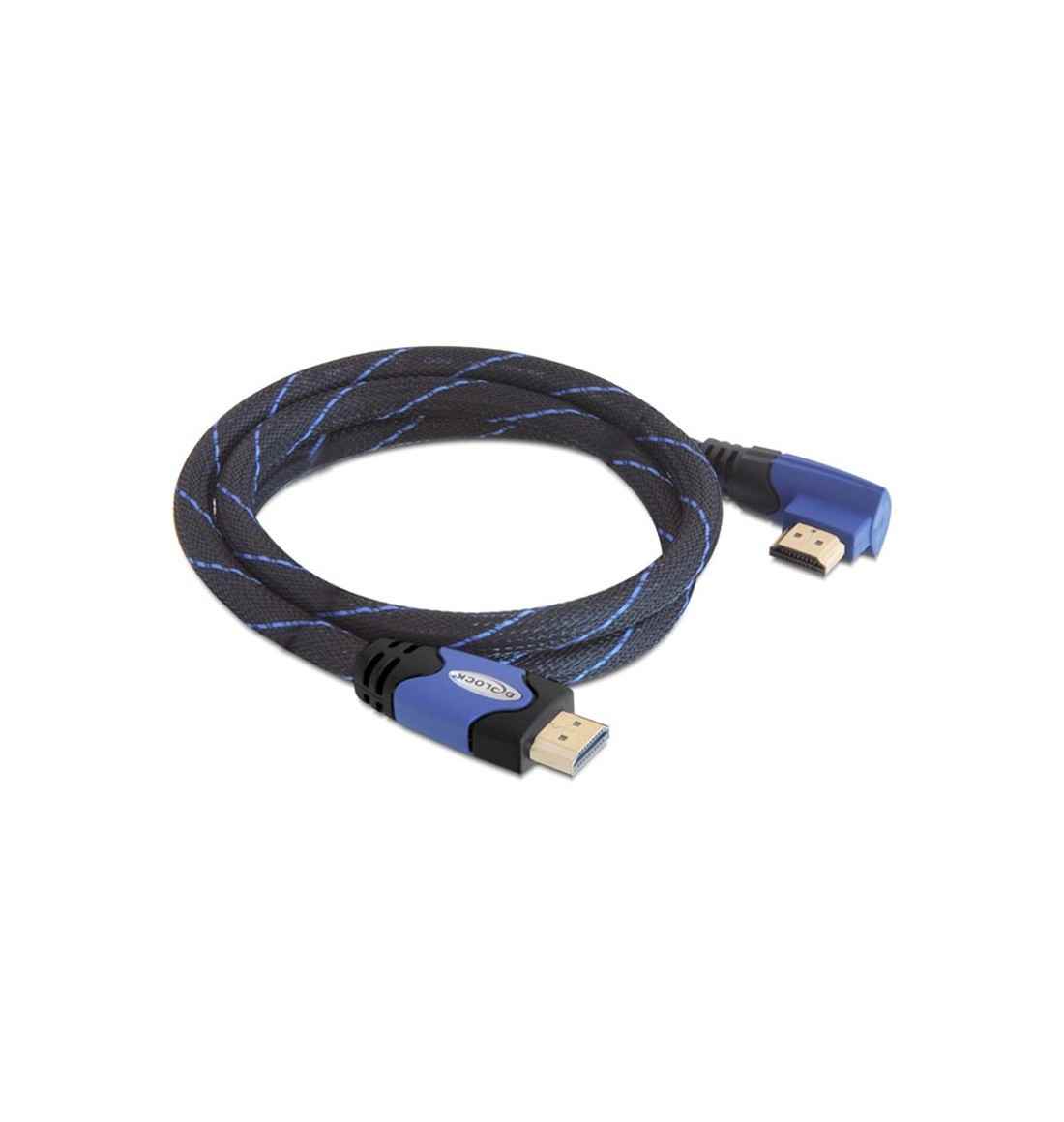 Dieses High Speed HDMI mit Ethernet Kabel von Delock entspricht dem neuesten HDMI Standard und vereint schnelle Datenübertragung sowie Audio-/ Video- und Ethernetverbindung in einem. Sie können somit z. B. Ihren PC oder ein DVD / Blu-ray Laufwerk an einen Monitor oder TV anschließen. Mit Hilfe des gewinkelten Steckers erreichen Sie auch schwer zugängliche HDMI Ports. Der HDMI-A Stecker ist zudem abwärtskompatibel zu seinen Vorgängern und ermöglicht weiterhin den Anschluss Ihrer bisherigen Geräte.